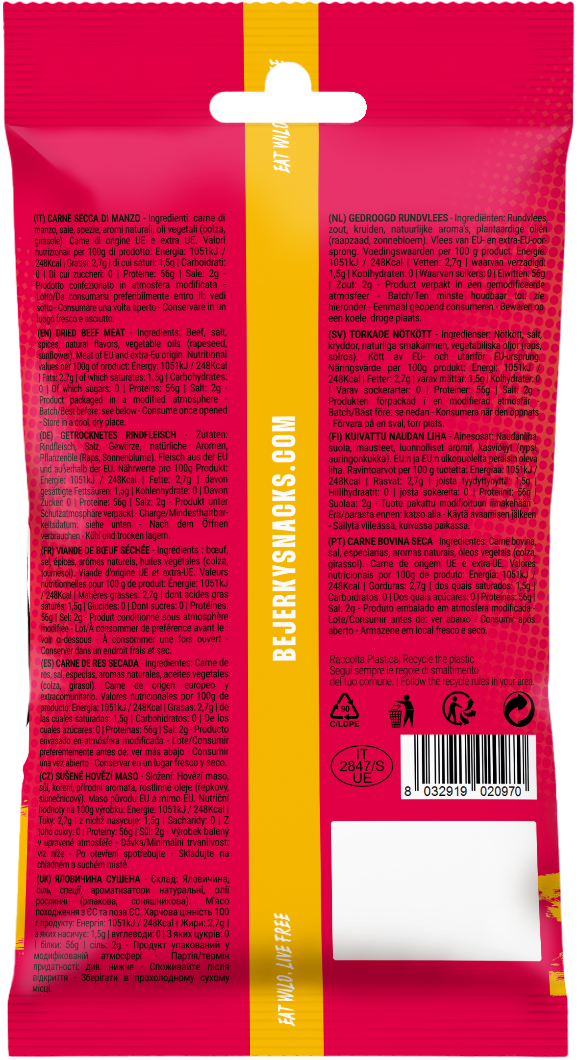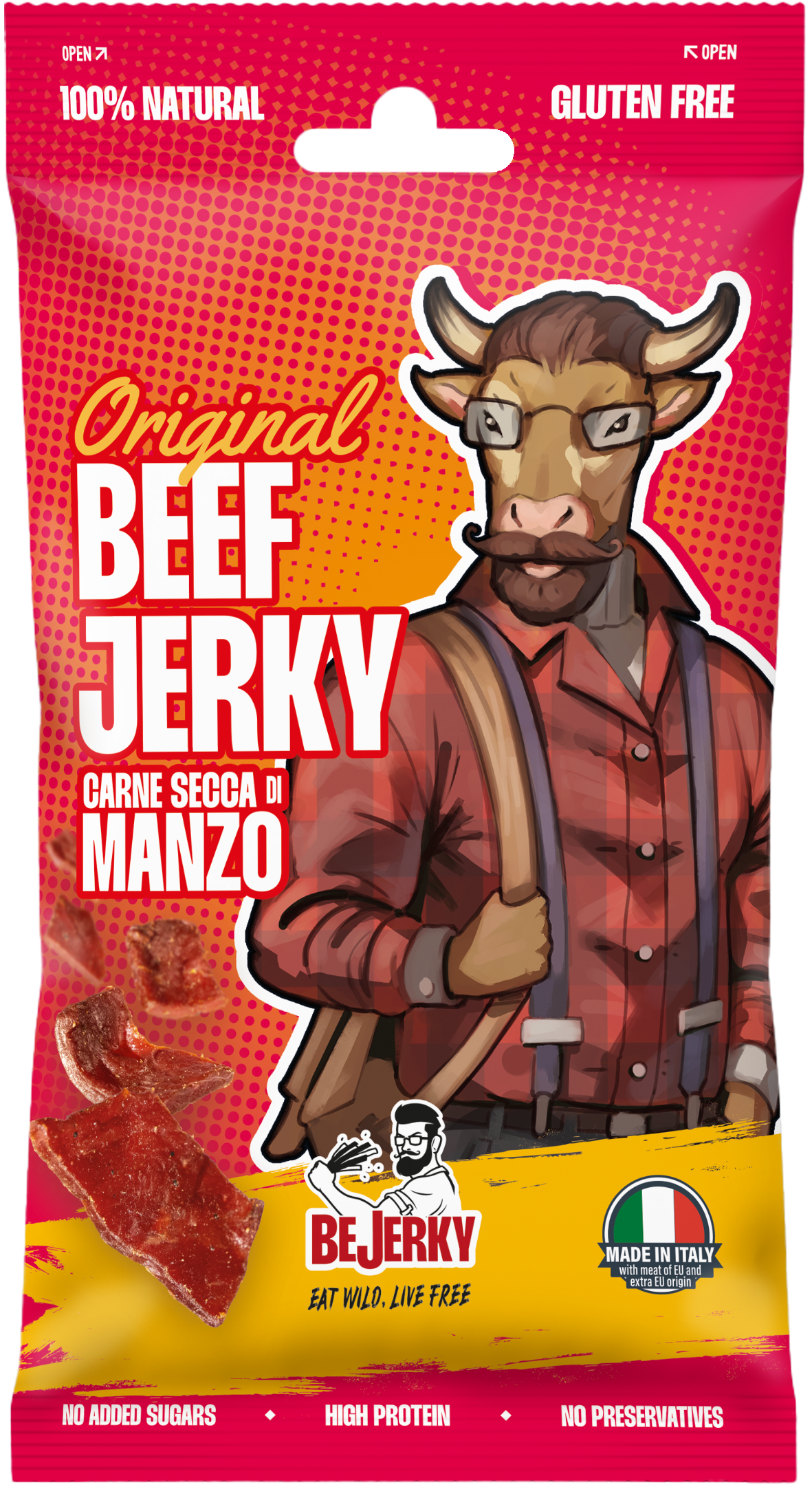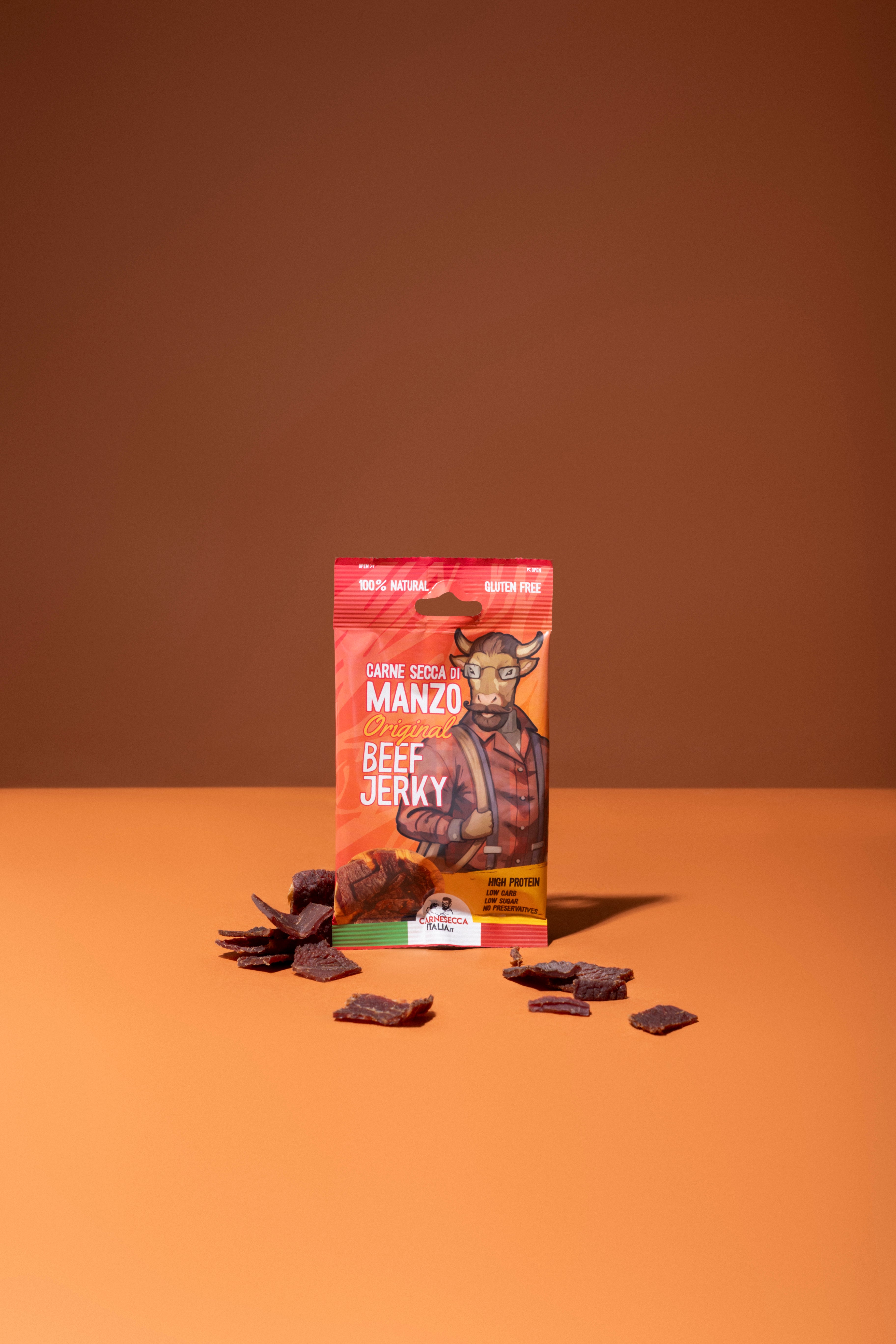 BeJerky Beef Jerky Original je místo, kde se italská tradice setkává s nekompromisní kvalitou. Vyrábí se pouze z elitních hovězích řezů, nejde o masově produkované jerky – je to vytříbený masový zážitek pro ty, kteří odmítají zkratky.