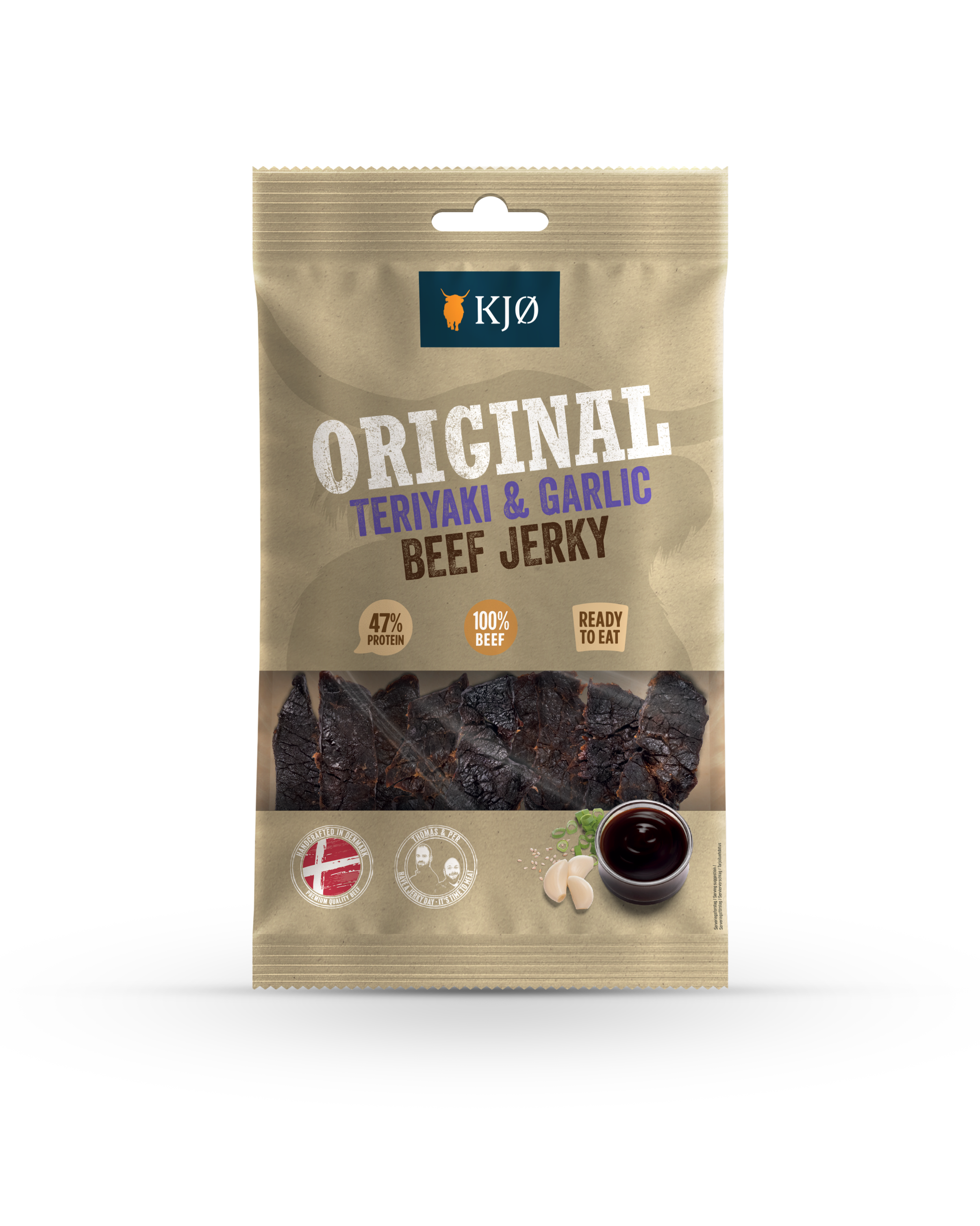 Take your snack game to the next level with KJØ Teriyaki & Garlic Beef Jerky – where East meets Danish craftsmanship.